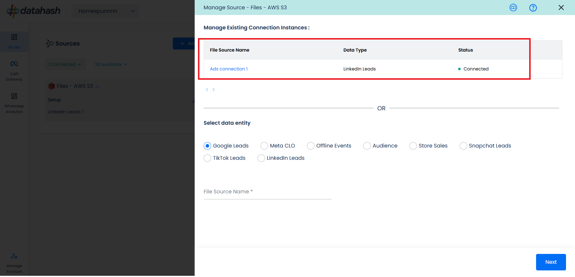 Once all the credentials are provided, Datahash will validate the credentials, after which the connection will be successfully set up – if all the credentials are valid.