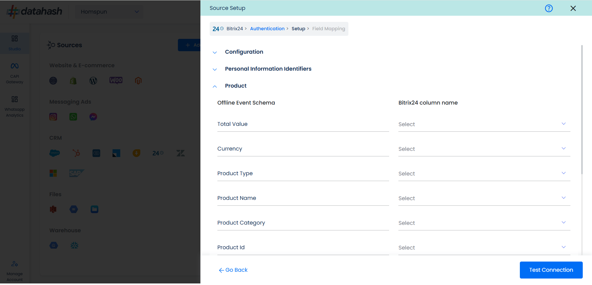 Next step is to map the CRM fields with the data points required for Offline Conversion API integration.